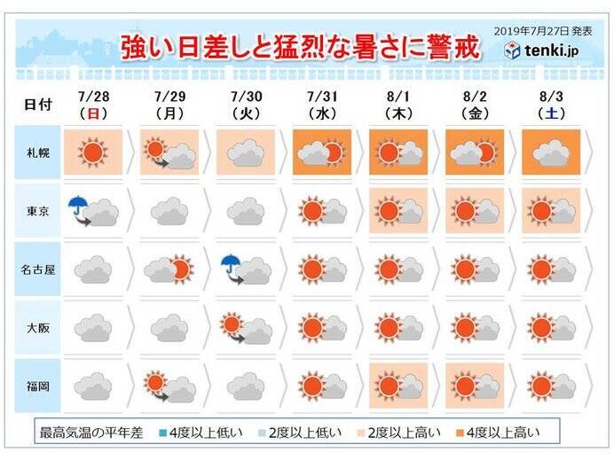 週間天気予報 今週は厳しい暑さに警戒 熱帯低気圧の動向も注意 8月5日 木 11日 水 ウェザーニュース